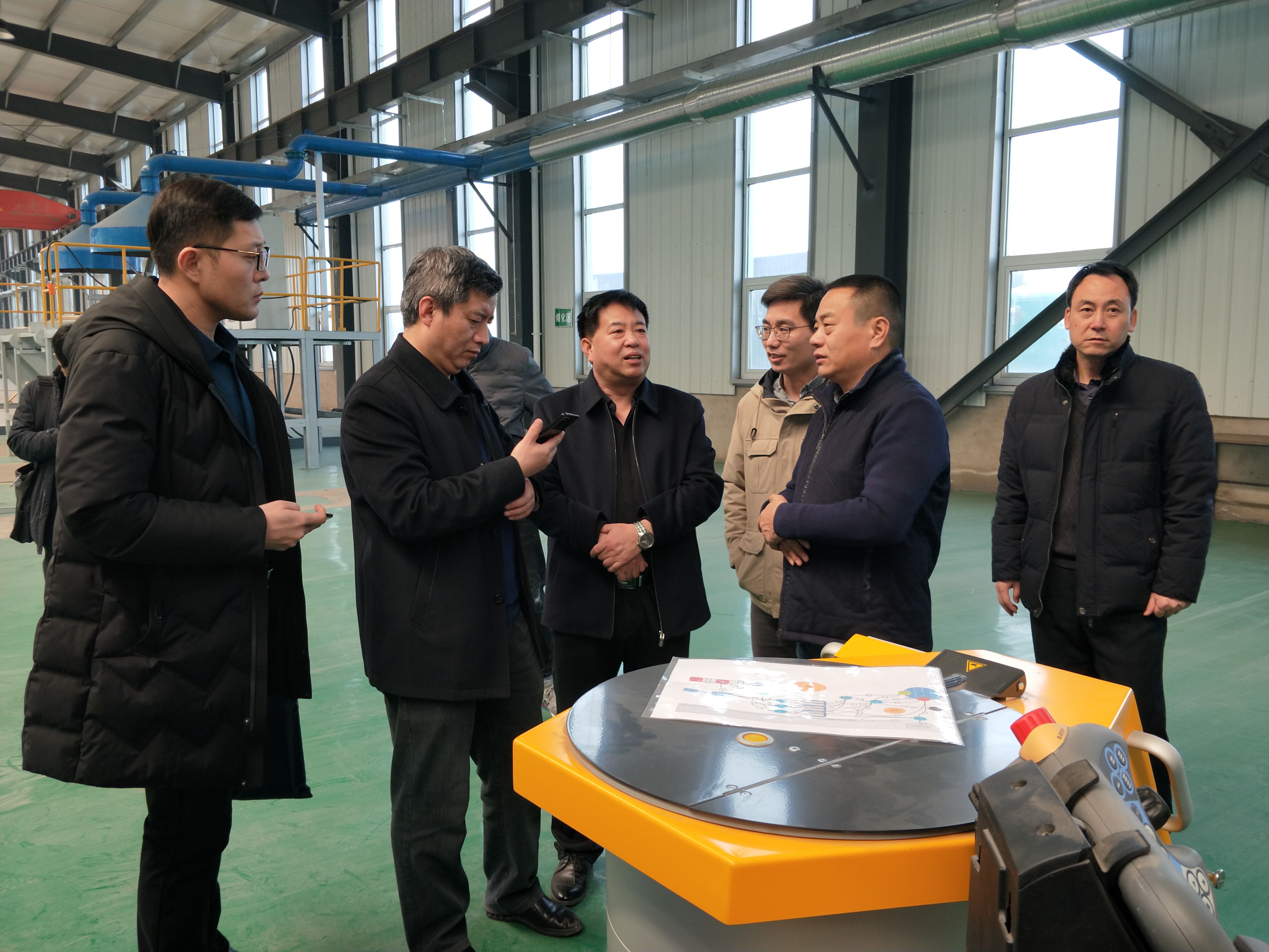 靳新遠(yuǎn)副局長一行在生產(chǎn)現(xiàn)場調(diào)研,參加座談會。